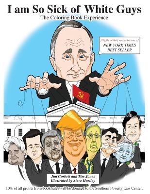 I am So Sick of White Guys: The Coloring Books Experience combines the long and revered American tradition of political satire with the latest popular craze, 'adult coloring books.' If you are sick of news reports of yet another white guy abusing his power and taking advantage of your government, your financial system, your society and your culture, to pad his own wallet, then I am So Sick of White Guys may provide an amusing outlet for your frustrations. (Time to break out your crayon - you'll only need one color ) Jim Corbett and Tim Jones collaborated with caricature artist, Steve Hartley to create a collection of beautifully crafted images that skewer some sacred cows (and a fair number of pigs as well) that have grabbed more than their fair share of the pie over the years while convincing the world that the only opinion that really matters is the opinion of a white guy with money or power. Each image is accompanied by witty, sarcastic and sometimes even snarky comments that just might be the elixir you need to help you cope with what is happening to the greatest democracy the world has ever known. (Remember when our elections were decided by an insane thing called the 'Electoral College, ' instead of an even more insane thing called Russia?) I am So Sick of White Guys will look great on top of that pile of magazines accumulating on your coffee table you're never going to get around to reading and will be a provocative conversation starter as guests peruse the depictions of some of your favorite prime-time foils. It has been suggested (by the authors) that if enough people buy I am So Sick of White Guys , more people will be energized to vote in America, which could lead to a world in which the opinions and contributions of ALL people were valued equally and perhaps-just perhaps- a world in which true progress could be made toward life, liberty and the pursuit of happiness. So, in a way, buying a copy of this book just might change the world. Not a bad return on your small investment .