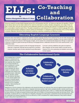 language learners (ELLs). This new quick-reference guide is designed to support all educators of ELLs (ESL specialists, classroom teachers, paraeducators) as they engage in a complete collaborative instructional cycle consisting of co-planning, co-teaching, co-assessing, and reflecting on practice. The guide identifies and describes the four phases of the collaborative instructional cycle.