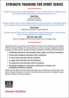 ABOUT THE NSCA The National Strength and Conditioning Association (NSCA) is the world's leading organization in the field of sport conditioning. Drawing on the resources and expertise of the most recognized professionals in strength training and conditioning, sport science, performance research, education, and sports medicine, the NSCA is the world's trusted source of knowledge and training guidelines for coaches and athletes. The NSCA provides the crucial link between the lab and the field. ABOUT THE EDITORS Kevin Neeld, PhD, CSCS, CPSS, RSCC*D, CMT, is the head performance coach for the Boston Bruins, where he oversees the organization's performance training program and sport science initiatives. He previously worked as a strength and conditioning coach with the San Jose Sharks and USA Hockey's women's team. Neeld earned his PhD in human and sport performance from Rocky Mountain University, where his research focused on the relationship between workload and performance in elite hockey. He has published several articles in peer-reviewed journals and is the author of Ultimate Hockey Training and Speed Training for Hockey . He has been an invited guest speaker at events hosted by the National Hockey League (NHL), National Strength and Conditioning Association (NSCA), and USA Hockey.