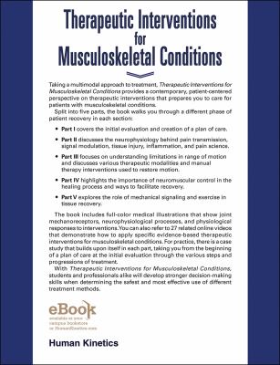 Denegar is a former editor in chief of the Journal of Athletic Training and served on the editorial boards of the Journal of Sport Rehabilitation and Journal of Strength and Conditioning Research and Open Access Journal of Sports Medicine . He has coauthored six textbooks, including this edition of Therapeutic Interventions for Musculoskeletal Conditions , and he authored or coauthored numerous book chapters and more than 150 peer-reviewed manuscripts. Grant E. Norte, PhD, ATC, is an associate professor in the kinesiology division of the School of Kinesiology and Rehabilitation Sciences at the University of Central Florida. He codirects the Cognitive, Neuroplasticity, & Sarcopenia (CNS) Laboratory within the Institute of Exercise Physiology and Rehabilitation Science. Norte''s research focuses on the neurophysiological aspects of knee joint injuries, aiming to develop innovative treatments for improved patient outcomes. His multidisciplinary approach investigates neural, muscular, movement, and patient-oriented impairments following orthopedic trauma, with an emphasis on ACL injury. Norte has published extensively on the topic of muscle inhibition, with his work supported by the National Athletic Trainers'' Association, American College of Sports Medicine, and National Strength and Conditioning Association.