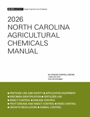 The North Carolina Agricultural Chemicals Manual provides extension specialists and agents, researchers, and professionals in the agriculture industry with information on the selection, application, and safe and proper use of agricultural chemicals. The manual is revised annually offering a wealth of up-to-date and reliable information covering pesticides, fertilizers, application equipment, specimen identification, growth regulators, and the control of insects, diseases, weeds, and animals. It is available digitally free of charge in a PDF format at the following url: content.ces.ncsu.edu/north-carolina-agricultural-chemicals-manual/.