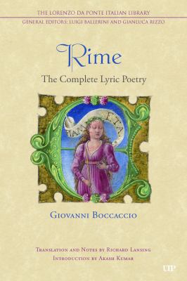 "Faithful, readable, elegant, and long awaited, this translation truly is a poetic tour de force in the service of scholarship." --Simone Marchesi, Professor of French and Italian, Princeton University "In these pages, we come to know a different Boccaccio. Here is a poet equally lifted and besieged by love, inspired by the natural wonders and mythological origins of the Bay of Naples, unwilling to spare pity for his adversaries, and bereft after Petrarch's death. Presented with the original Italian text en face , Richard Lansing's dynamic translation brings Boccaccio's lyrical voice to new life in idiomatic English. Akash Kumar's elegant introduction contextualizes Boccaccio's rime in the author's oeuvre and situates his poetry within its multicultural and Mediterranean cultural networks. A long-overdue resource, RIME makes available--at last--Boccaccio's lyrical voice for students, scholars, and readers of medieval and Renaissance literature." --Kristina M. Olson, Associate Professor of Italian, George Mason University and Editor-in-Chief, Dante Studies "Lansing's translation of Boccaccio's RIME provides a great service to students and scholars.