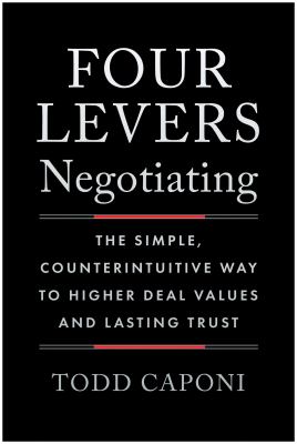 A simple framework applicable in every common business-to-business sales scenario for building trust and leaving negotiating anxiety behind. Have you ever felt like learning to negotiate requires a different personality than that required to sell? Great salespeople foster relationships built on trust and a focus on customer outcomes. Yet, when the customer says "yes" and it's time to negotiate, we change personalities. We hide things, focus on our own optimal outcomes, and in many cases, leverage strategies drawn from FBI hostage negotiation techniques. There's a better way. In Four Levers Negotiating , sales leader, award-winning author, and sought-after speaker Todd Caponi shows you how through a simple, immediately actionable framework for all the common sales scenarios you encounter--big deals and small. Learn: Why traditional negotiating approaches are no longer sustainable The four levers to pull in any negotiation to make magic happen How to better position and propose your pricing Strategies for navigating common concession requests that arise in negotiations In today's "as-a-service" economy, where the deal itself is merely an early milestone on the path to acquiring customers who not only buy from you, but stay, buy more, and become your advocates, one-off, trust eroding approaches are no longer sustainable. Four Levers Negotiating is your immediately actionable guide to building trust instead of eroding it, discounting less, forecasting more accurately, and, ultimately, leaving negotiating anxiety behind.